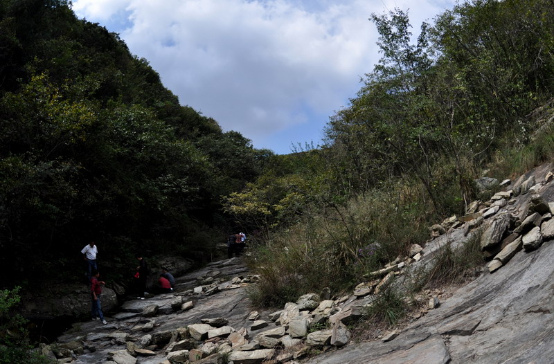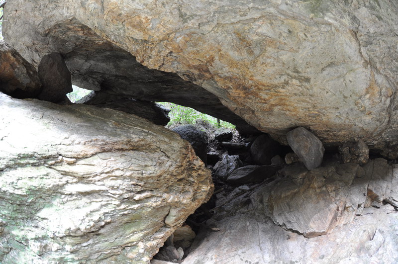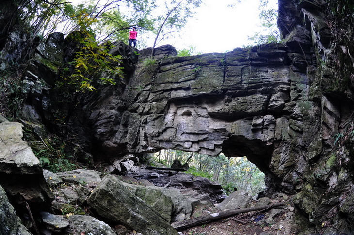 位于老嘉山,巨石横亘山崖之间的仙人桥,位于二四五部队南峡谷中上部,高约