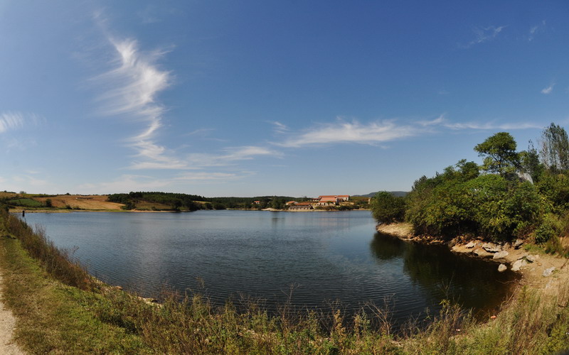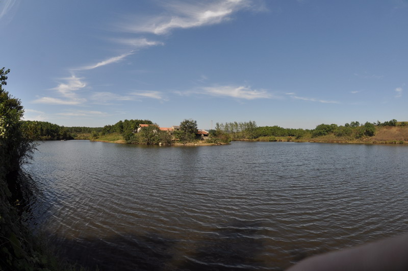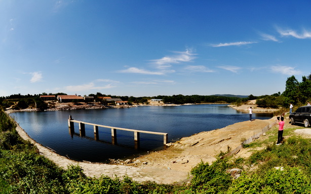 位于老嘉山,水面约有百亩,湖的东西两端各呈牛角状,对称有致;两角中部向南延伸犹若宏脸巨面——整体酷似牛头模样。