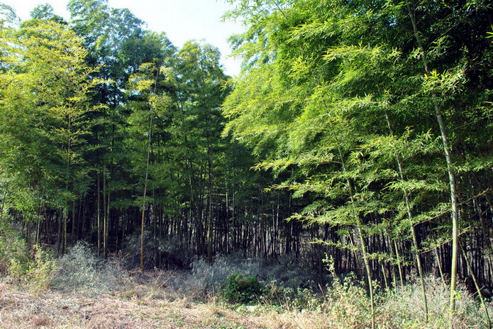 老嘉山脚下后沟入口处,有一片蔚为壮观的竹林,约有几十亩地。竹干挺拔俊秀,竹枝旁逸斜出,竹叶生机盎然,郁郁葱葱,遮天蔽日。此竹林为“皖东第一幽”,也是最大的竹海。